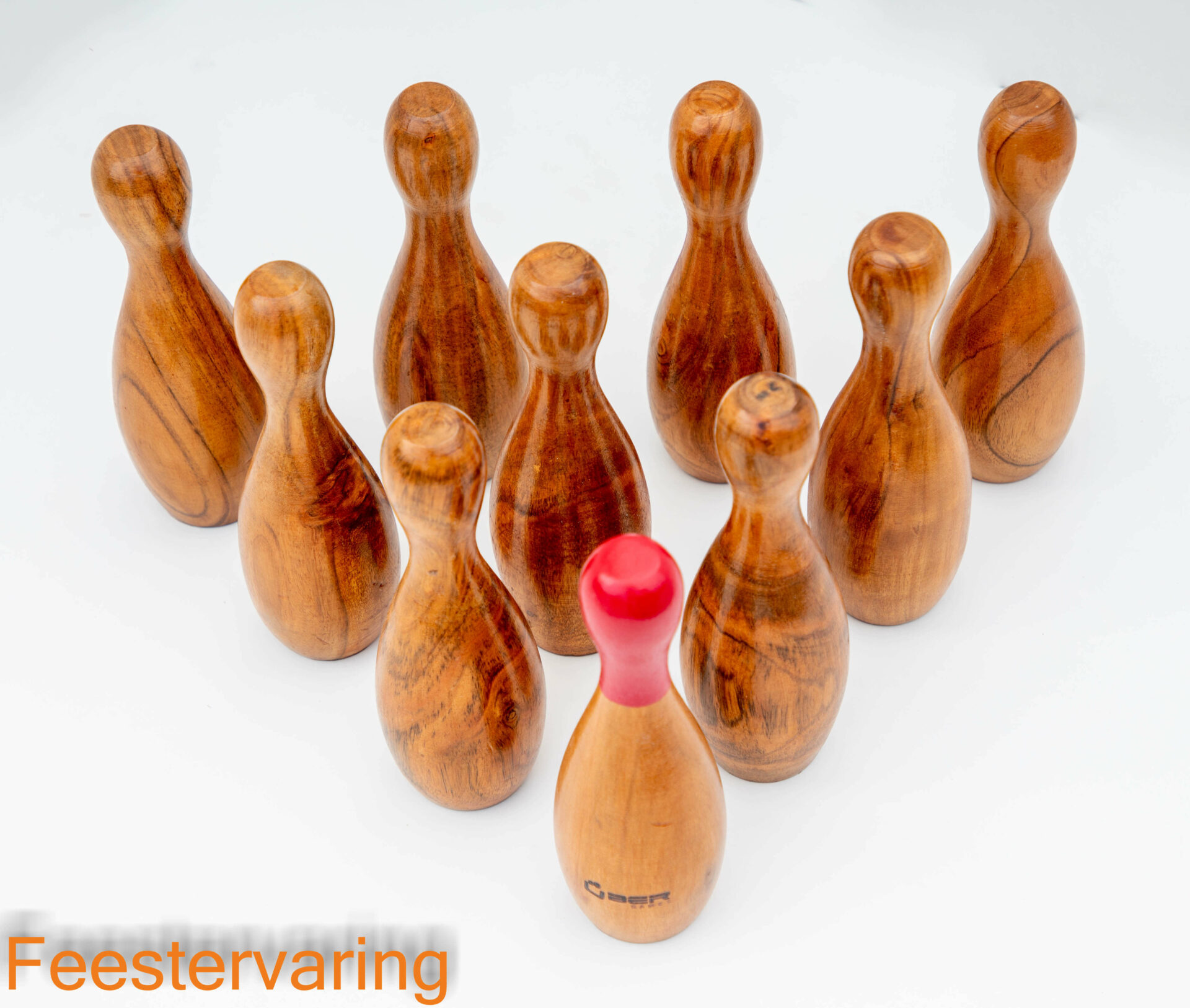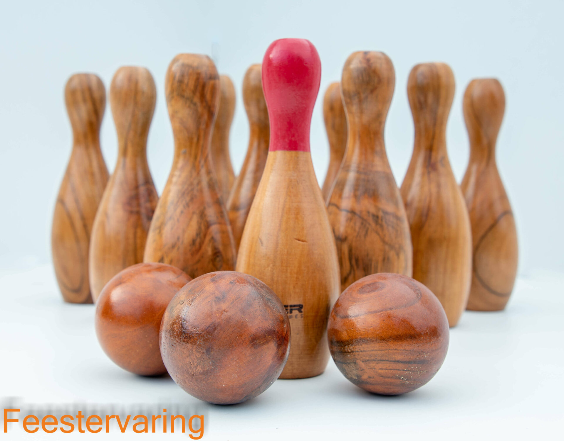 Een prachtig ontworpen bowling set gemaakt uit donker afgelakt Indisch hardhout. Bestaande uit 10 houten kegels van 22 cm en 3 hardhouten ballen met een diameter van 8 cm. Iedere speler rolt 2 ballen na elkaar (uitgezonderd bij een strike), wanneer de speler in 2 beurten alle kegels omgooit, scoort hij een spare.
