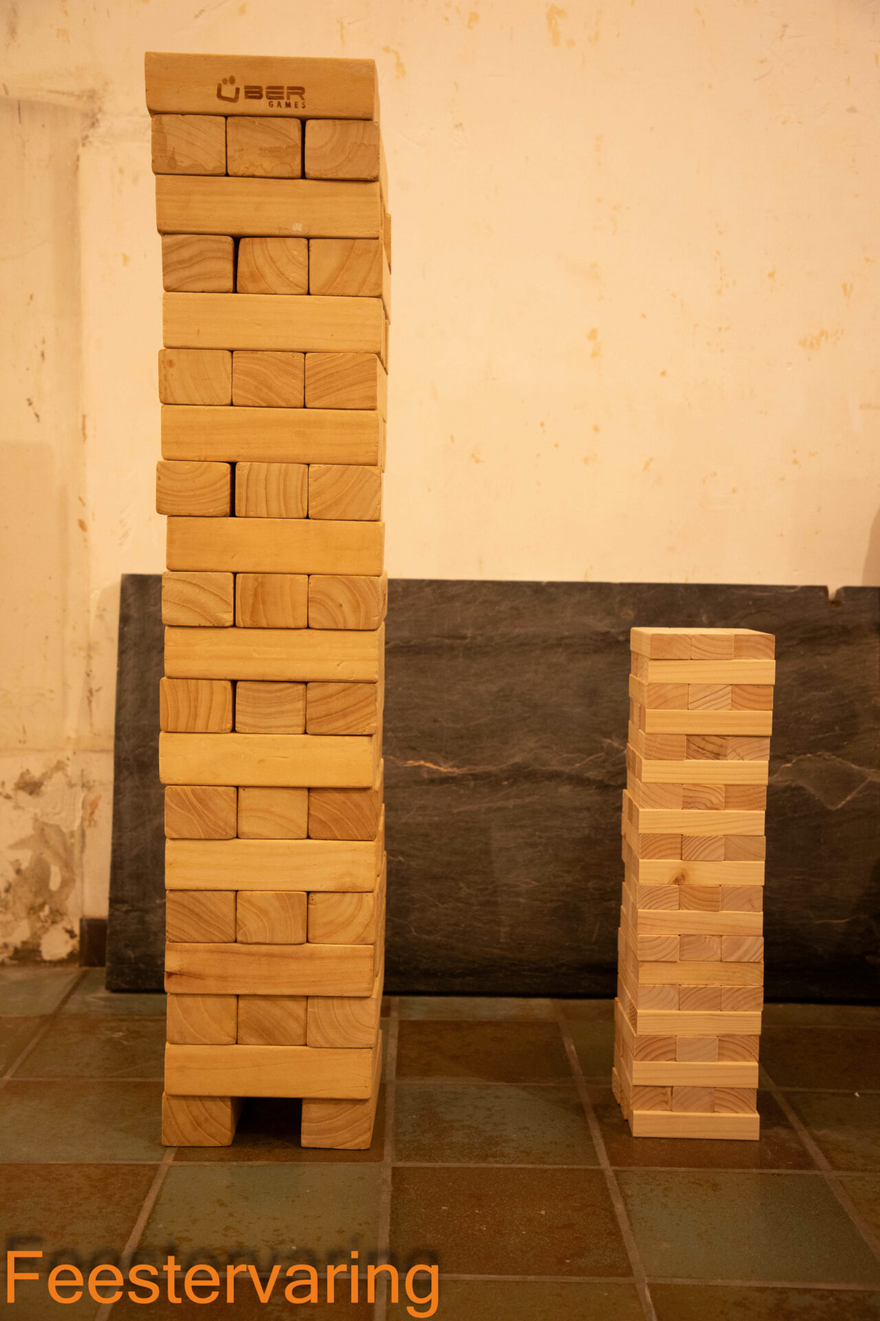 Met de houten blokken kunt u een toren bouwen. Daarna begint het spel. De bedoeling is een blok uit de stapel te halen en deze bovenop te leggen. Zo wordt de toren steeds hoger. Als de toren omvalt heeft u verloren.